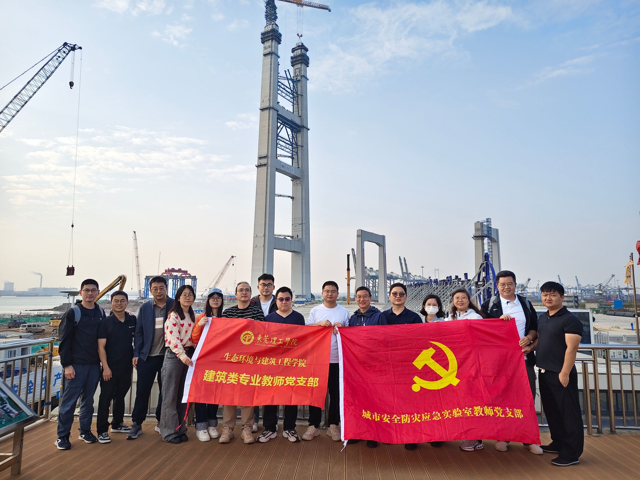 为深化产学研融合,推动党建与业务工作双促双进,12月3日,bevictor伟德官网建筑类专业教师党支部与城市安全防灾应急实验室教师党支部联合赴东莞港沙田四期工程和狮子洋通道项目交流。本次活动由原港珠澳大桥管理局副局长余烈教授牵头组织,通过实地调研国家重点工程,双方就技术创新、人才培养等议题展开深入探讨。