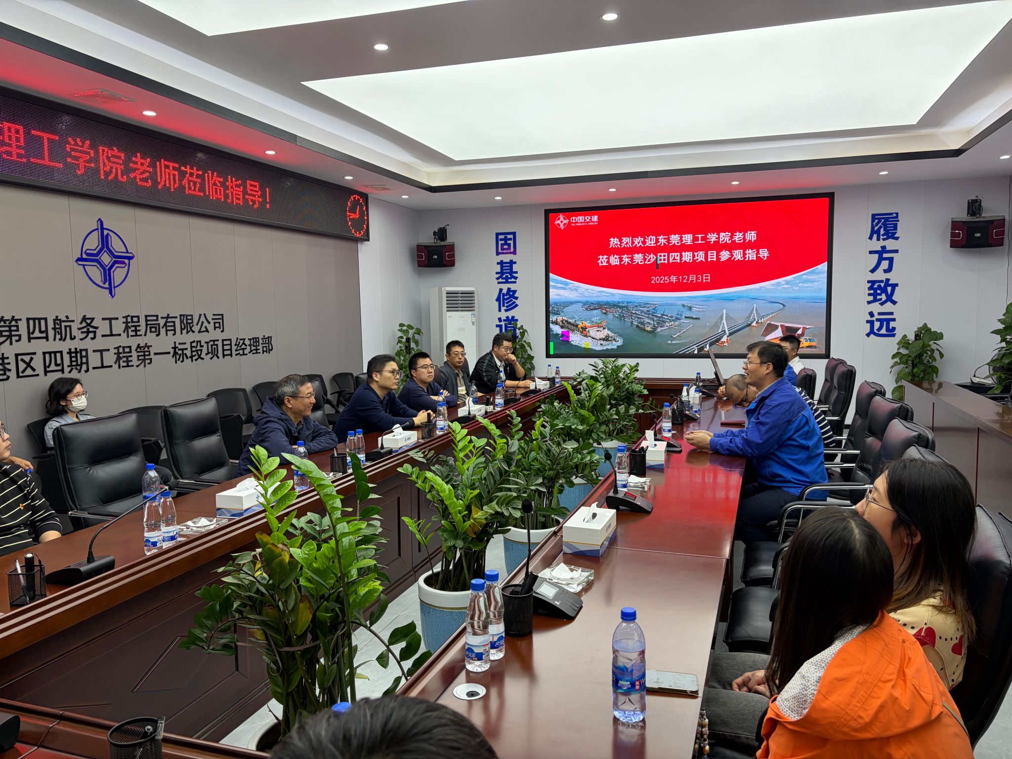 在项目现场参观过程中,支部教师与技术人员围绕海岸工程防灾设计、模块化施工、沿海结构工程混凝土材料的选取、混凝土中钢筋的腐蚀防护等专业问题进行了深入交流。双方一致认为,未来可在“智能监测系统研发”、“极端天气下工程防护”等方向开展联合研究,并为员工提供宝贵的现场实习与工程实践机会。