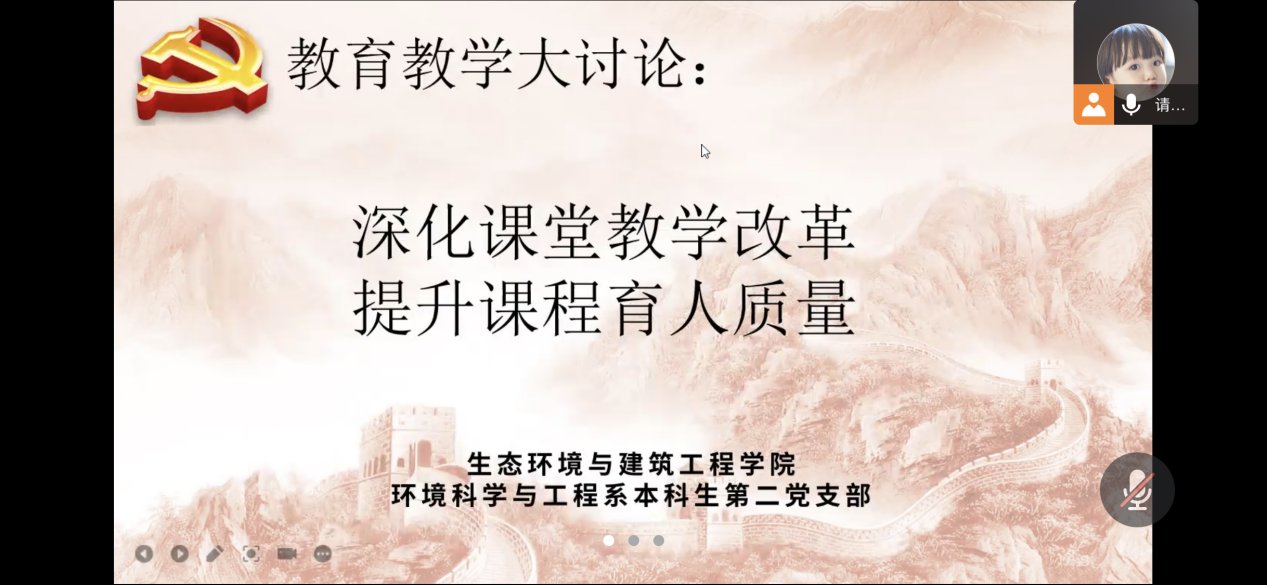 2022年3月31日中午,bevictor伟德官网环境科学与工程系本科生第二党支部开展了“深化课堂教学改革 提升课程思政质量”主题党日活动。会议由党支部书记张媚老师主持。