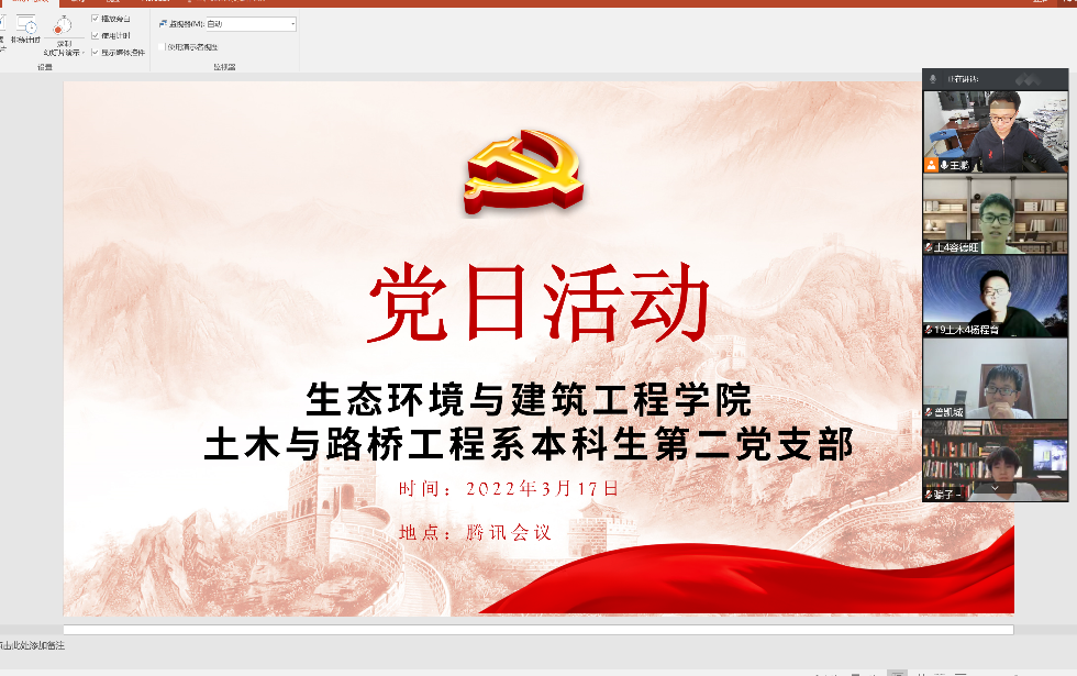 2022年3月17日晚上,bevictor伟德官网土木与路桥工程系本科生第二党支部召开一次线上的会议,由党支部书记王鹏主持召开,参会为土木与路桥工程系本科生第二党支部所有同志。