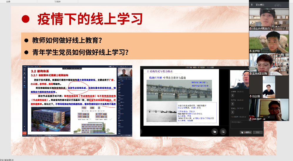 何春灿同志、庞书孟同志作为教师党员,认真分析了线上上课的利弊,并表示以后会更加注重线上上课的质量,给员工做良好的示范。杨程育同志,曾凯城同志等作为员工党员代表,也表达了自己对线上上课的看法,简述了线上上课的优缺点,并表示自己以后会严格要求自己,提高上课学习的效率。