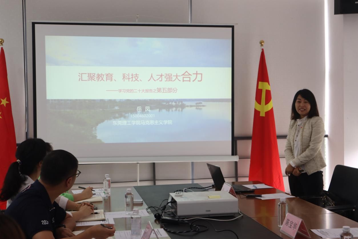 首先岳凤同志开展主题为“汇聚教育、科技、人才强大合力——学习党的二十大报告之第五部分”的讲座,带领大家重温二十大报告第五部分——实施科教兴国战略,强化现代化建设人才支撑。重点解读教育、科技、人才在国家未来发展目标中起到的重要作用;让全体党员更深刻理解科技是第一生产力、人才是第一资源、创新是第一动力的深层次内涵;理解科教兴国战略、人才强国战略、创新驱动发展战略三大战略部署的必要性和内在联系;坚信在百年未有之大变局中,在党的带领下,开辟发展新领域新赛道,塑造发展新动能新优势,打好组合拳,发挥新型举国体制优势,集中力量办大事,集中力量成大事,全面建成社会主义现代化强国。