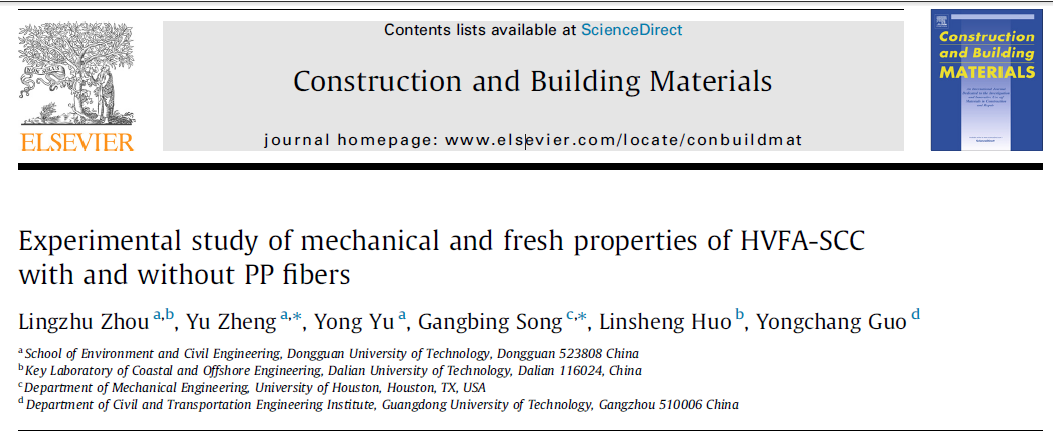 2020年9月,伟德国际唯一官网入口郑愚教授团队和休斯顿大学宋钢兵教授合作在国际期刊《Construction and Building Materials》上发表论文。《Construction and Building Materials》期刊的影响因子为4.419。该成果以bevictor伟德官网为第一单位,联合培养博士生周玲珠同学为第一作者,郑愚教授和宋钢兵教授为通讯作者。