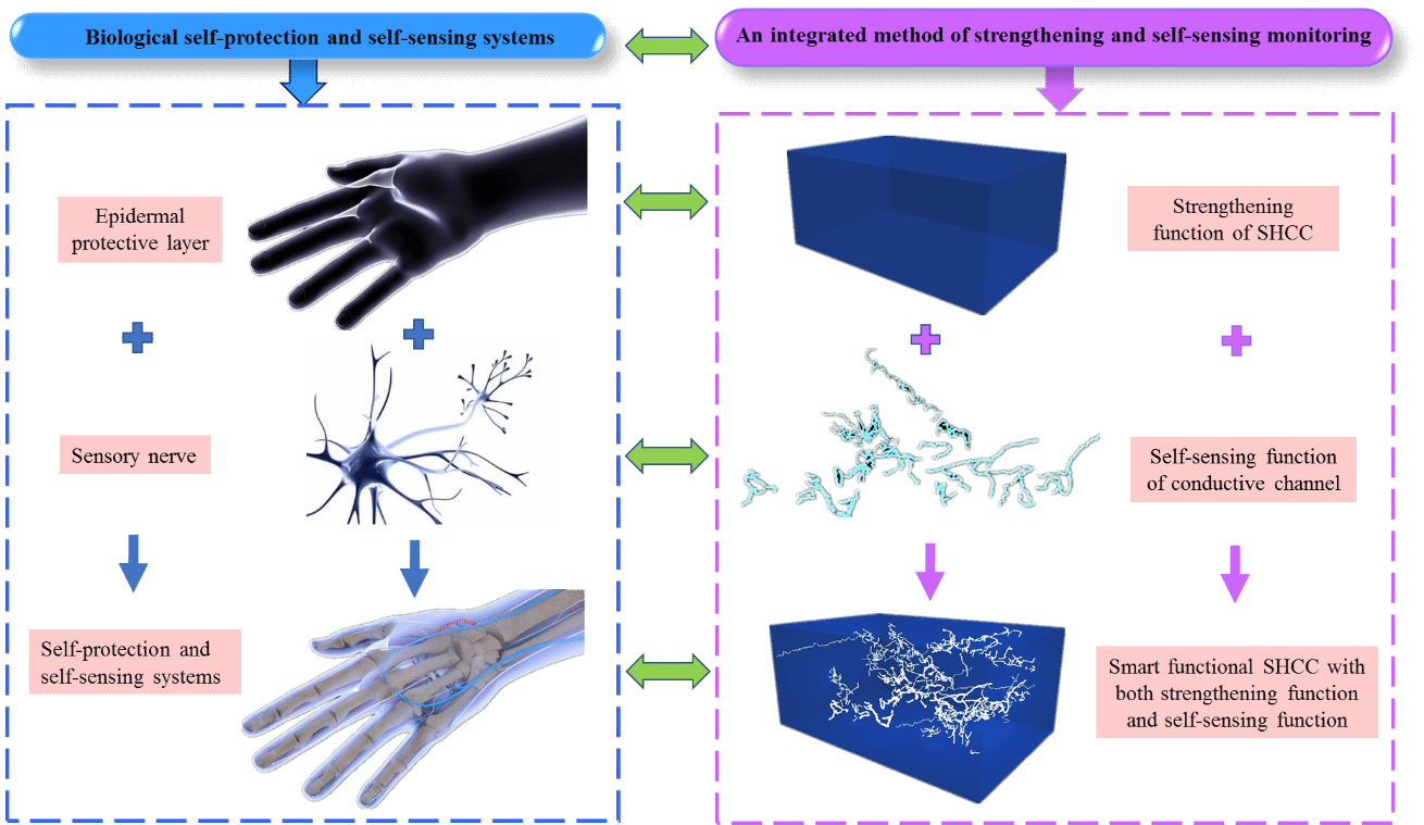图 1. 智能-功能水泥基复合材料的加固与自感知一体化概念图