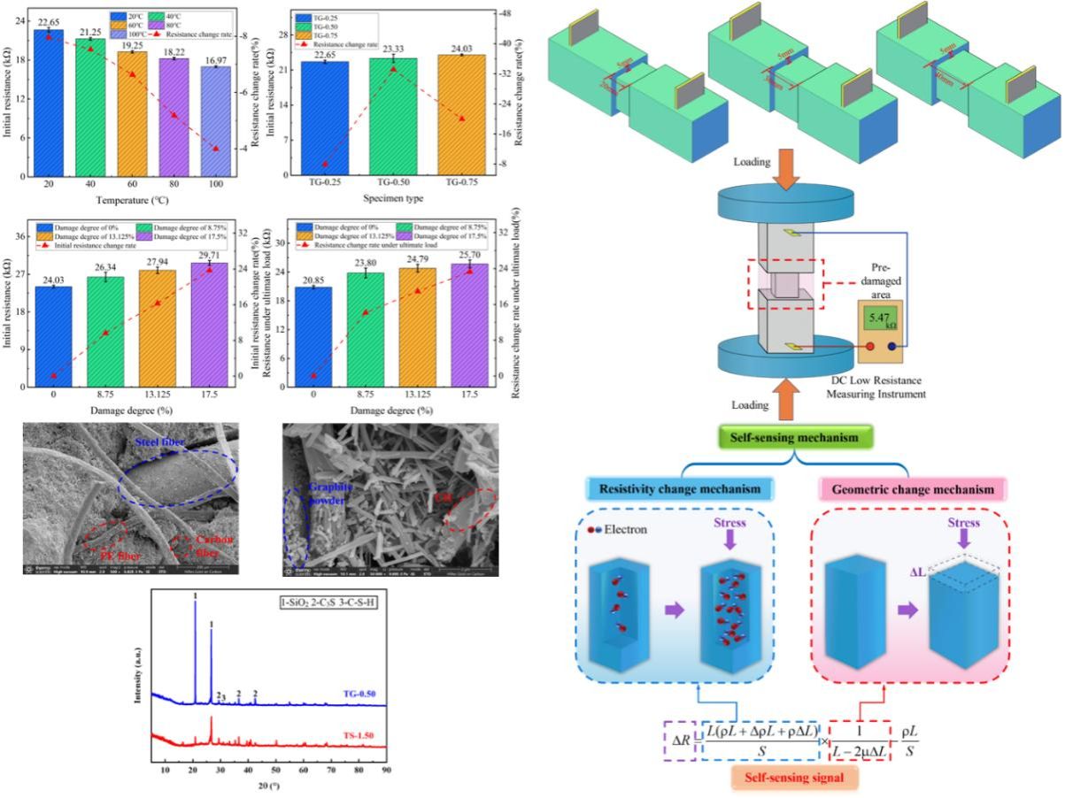 近日,田俊特聘教授、郑愚副董事长、袁锦昀院士等人在工程技术领域TOP期刊《Construction and Building Materials》发表了题为Study on the comprehensive performances of self-sensing ECC under coupling effect of temperature and load: Microscopic characterization, self-sensing performance, damage self-sensing theoretical model的研究论文。公司田俊特聘教授为论文的第一作者,硕士研究生章思宇为论文的第二作者,伟德国际唯一官网入口为论文第一完成单位和通讯单位