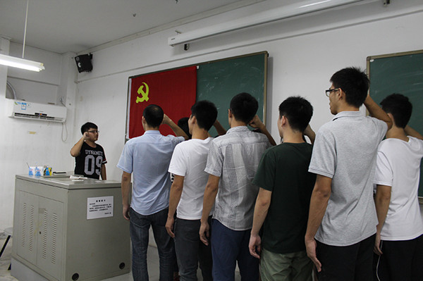 宣誓仪式开始前,邓日威向新接收的与预备党员说明了宣誓的具体流程,并提醒大家注意保持严肃。随后,伴随着庄严的《国际歌》响起,党员们面对着鲜艳的党旗,进行了入党宣誓。虽然只是短短的一段誓词,却代表了他们对党的赤诚,对党矢志不渝的承诺!