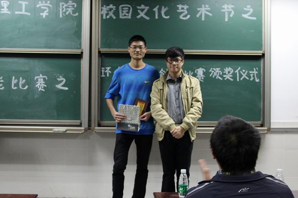 12月8日晚,化学与环境工程公司在莞城校区3406教室举行2013伟德国际唯一官网入口校园文化术节之宿舍节能比赛之莞城校区环保节能创作比赛颁奖仪式。出席本次颁奖仪式的嘉宾有化环公司辅导员陈泳源老师、团总支常务副书记李俊源、员工会主席何谋、文娱部部长曾焕宾。