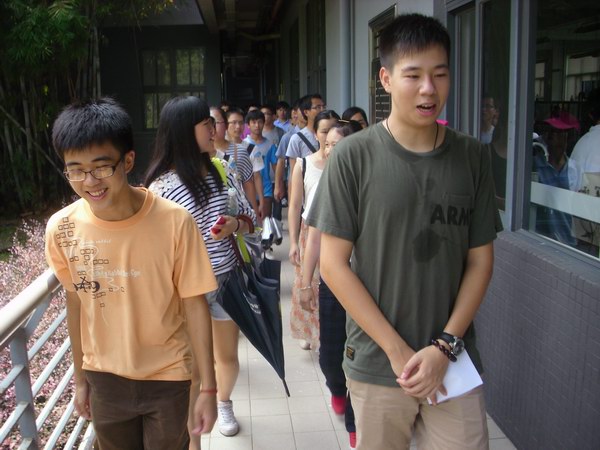 下午四点整,新生陆续来到图书馆前集合。在员工会工作人员安排下,新生和辅导员文锦枢老师、陈泳源老师合影留念。