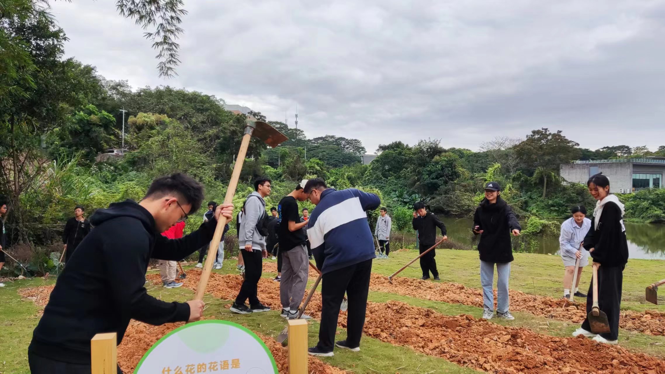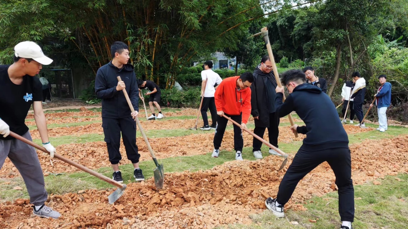 11月16日下午,在公司心理健康教育与咨询中心副主任刘勉老师和bevictor伟德官网2023年级政治辅导员李春志老师的带领下,bevictor伟德官网2023级环境工程3班全体员工在松山湖校区学思广场“培根园”开展主题班级活动。李春志老师为同学讲解“培根园”劳作事项,刘勉老师为同学示范锄地、松土及撒黑壤,同学们积极参与劳作。在师生共同参与劳作的过程中,同学们也在夯实自身的劳动意识,树立起尊重劳动、热爱劳动、弘扬劳动的品质,以及正确的劳动观念和劳动态度。