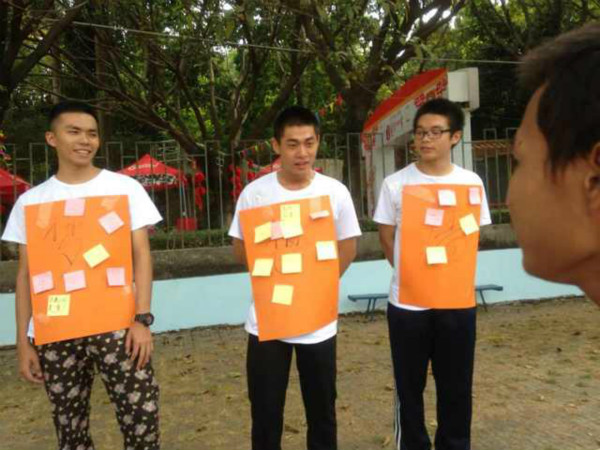 首先,在谢铭的带领下,团员青年匿名写下自己心中的梦想,由相关工作人员回收便利贴,由谢铭带领大家一同浏览部分团员青年们的中国梦,并为该支部成员献上美好的祝愿。接着,又进行了“解手腕”、“一元五角”等小活动。在小活动进行期间,所有团员青年都积极参与,出谋划策,在“解手腕”的小活动中,团员青年团结协作,不急不躁,一同收获了喜悦。特别在“一元五角”的小活动中,两个方阵的团员青年互不相让,斗智斗勇。期间,还有由“高级合伙人”团队送出的椰汁糕、泡芙等小食品作为奖品,这更是让整个活动锦上添花。