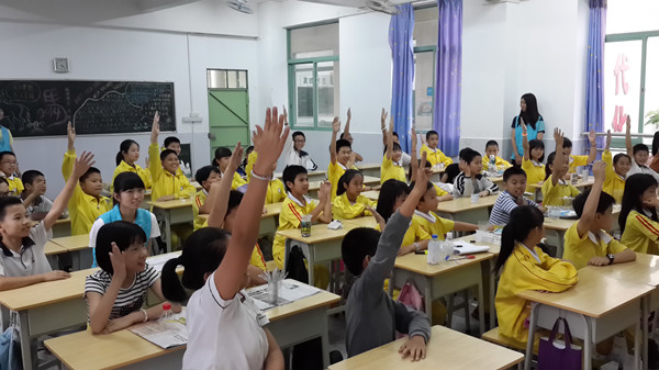 在莞城阮涌小学授课期间,员工对新的课程充满好奇,在志愿者讲师的指引下都积极回答问题,了解生活垃圾的相关知识,而且都清楚认识到自己如何在防治生活垃圾污染贡献自己的力量。接着由队员梁韵琪员工展示了“泡沫大爆炸”实验,实验表现出的现象引起员工对化学的强烈兴趣。紧接这是手工艺制作,小朋友在志愿者的引导下,利用废塑料、废纸等,制作出一件件新颖而富有创意的手工艺。