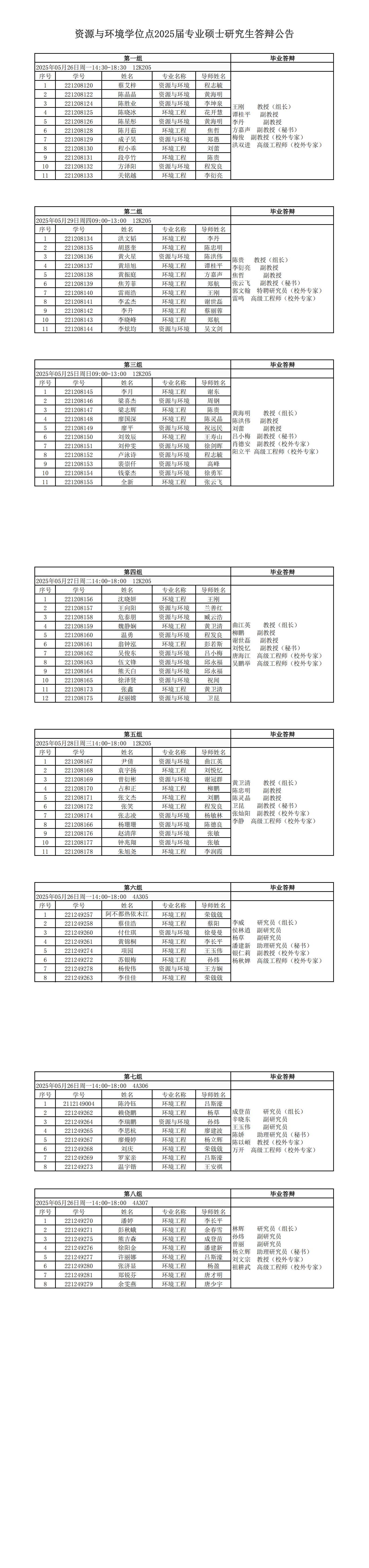 资源与环境学位点2025届专业硕士研究生答辩公告
