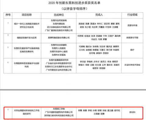 2020年1月10日,东莞市高新技术产业协会正式公布2020年创新东莞科学技术奖评审结果,由我校土木工程学科团队牵头申报的“对非金属筋材桥梁结构工作性能的研究”项目成果荣获2020年创新东莞科技进步奖。