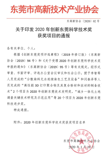 本次创新东莞科学技术奖共评选出2项技术发明奖、20项科技进步奖,其中公司作为牵头单位获奖1项,作为参与单位获奖3项。
