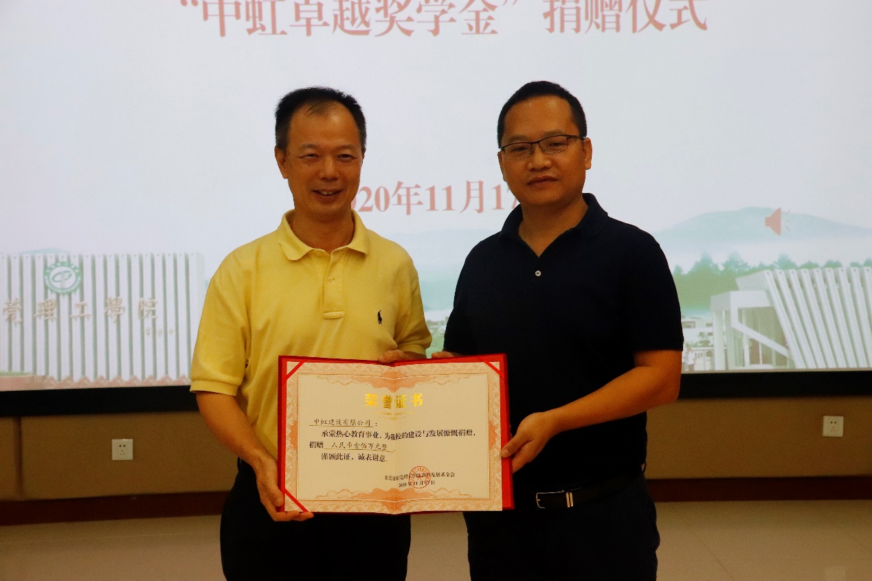 仪式上,郑愚经理表示,希望通过校企双方守望相助,能够培养出适宜现代产业发展的人才。为培育出勇于担当、善于学习的高素质应用型创新人才贡献出力量。黎总经理认为,十年树木,百年树人。只有不断培养出更多更好的人才,企业发展才能有更强大的支撑。设立“中虹卓越奖学金”,不仅是表达对母校的感恩之情,还能进一步推动中虹建设与公司的校企合作进程及人才交流的互动。希望这次奖学金的设立,能够帮助bevictor伟德官网培养卓越的人才。