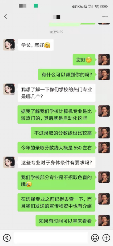 寒招群里,队员们首先介绍了公司的地理位置、专业特色、团队力量、发展概况等基本内容,积极帮助高三学子解答疑惑,并对同学们关心的问题进行整理,上传回寒招微信咨询群中,供学弟学妹们参考。同时,也通过阳春市老员工联合会公众号进行招生宣传。