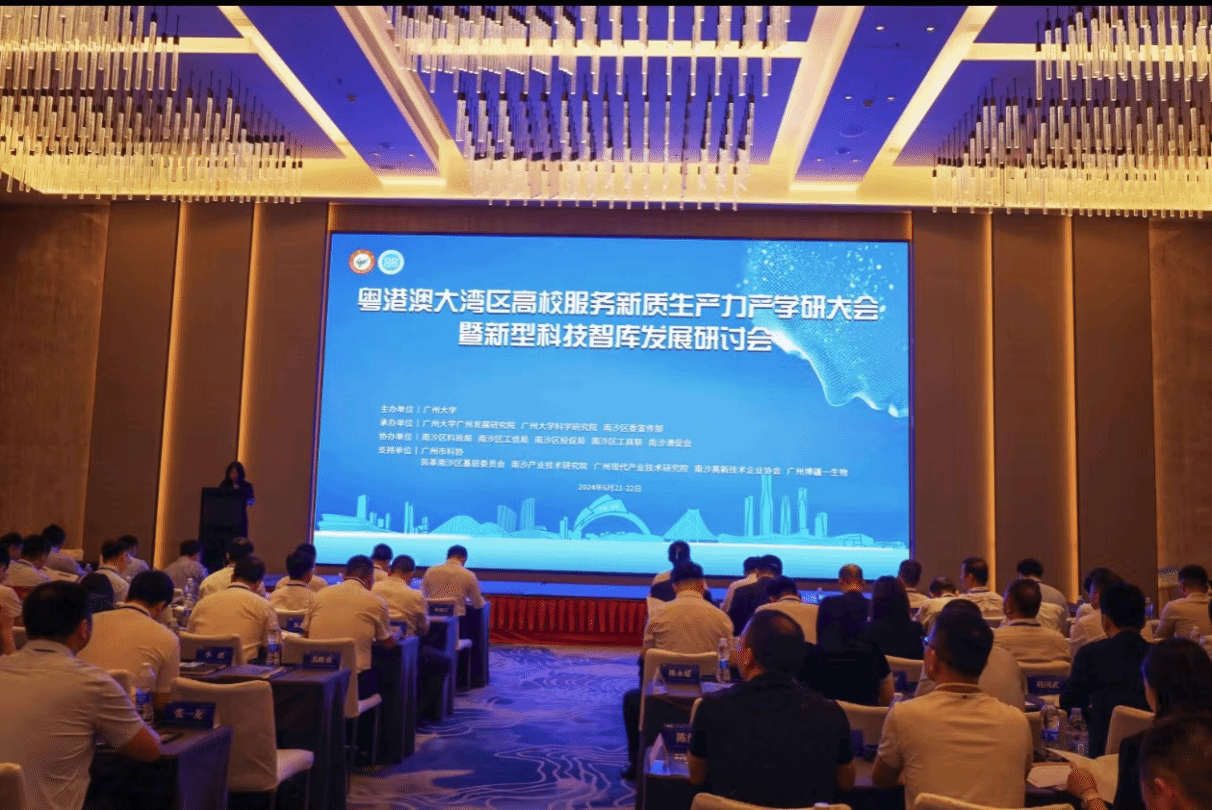 6月22日,粤港澳大湾区高校服务新质生产力产学研大会暨新型科技智库发展研讨会在广州南沙区开幕,公司郑愚教授及花开慧副教授受邀参加。本次大会由广州大学主办,广州大学广州发展研究院、广州大学科学研究院、南沙区委宣传部承办。50多名高校及科研团队专家代表、近百位企业代表以及相关部门负责人参加大会,共同探讨新质生产力培育与粤港澳大湾区的融合发展路径,推动产学研深度合作,促进大湾区高质量发展。