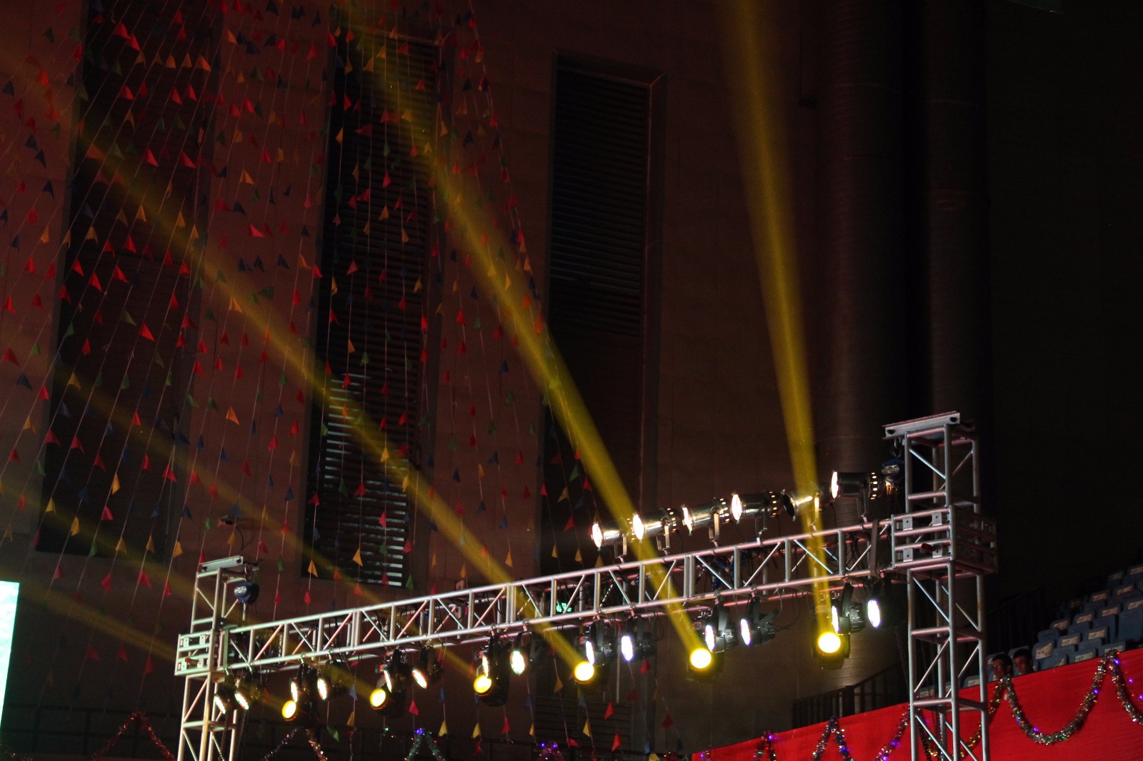 在体育馆内的后部,公司早已架起了一个大型的舞台。在上面表演的不是以往迎新的员工组织成员,而是初入大学的新生们。他们没有进行很长时间的练习,有背着一把吉他便独自上台的人,也有相识不久就一同表演的几个伙伴。在一系列的演出中段,亲临现场的数位公司领导、老师都被邀请上台为新生们带来新学期的祝福,同时也为演出的“神秘嘉宾”—当天生日的17级员工一一送上礼物。