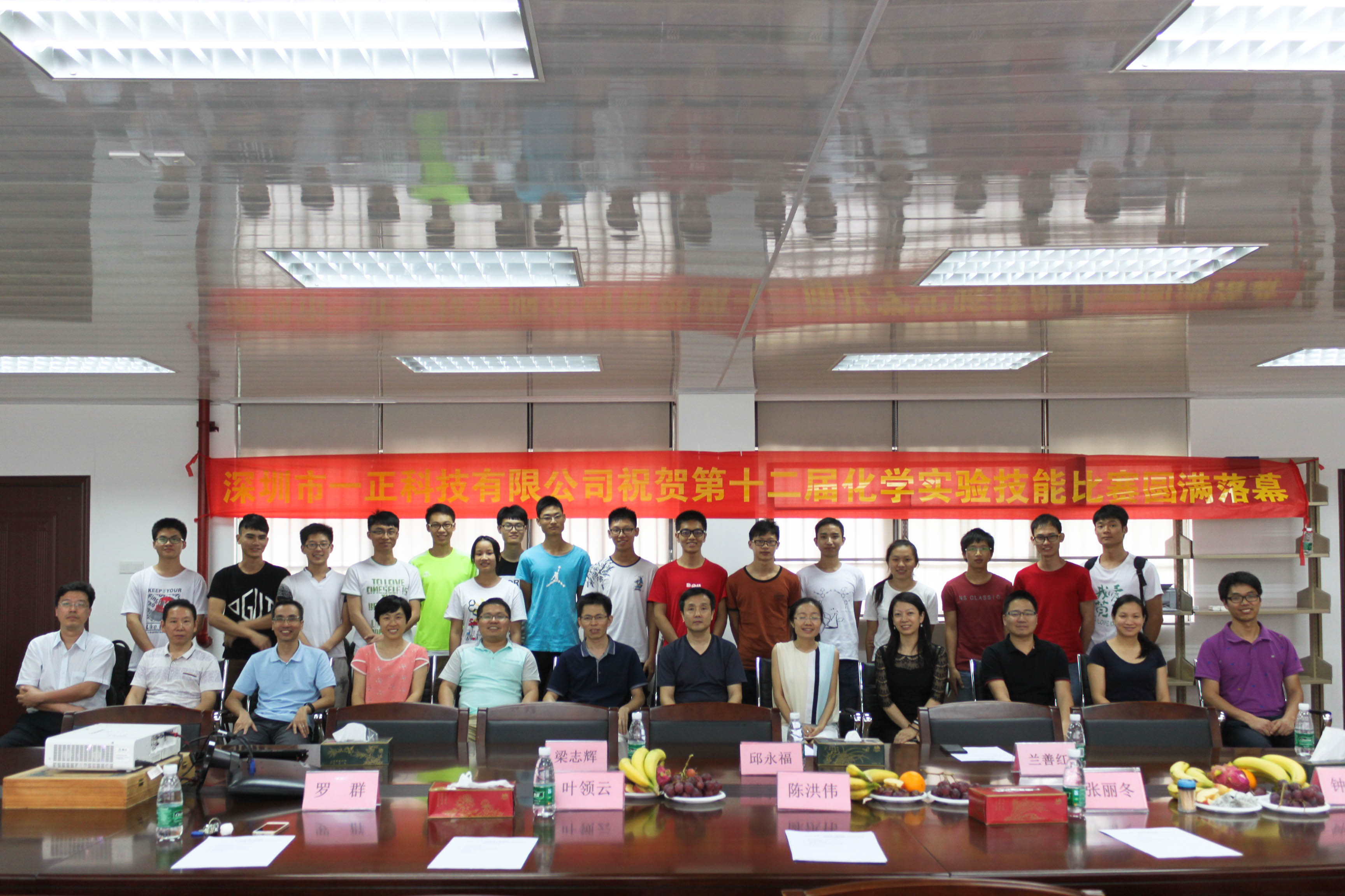 2016年5月27日14时30分, “一正杯”第十二届化学实验技能比赛颁奖礼暨闭幕式于公司松山湖校区12K205成功举办。与会人员有化学与环境工程公司副经理兰善红老师、党总支书记君光老师、邱永福教授、梁志辉主任、深圳市一正科技有限公司代表钟明、张丽冬及评委组老师们刘传生、叶领云、陈洪伟、刘啸天、柳鹏、罗群。本次活动旨在回顾、总结,并对在本次比赛中表现优秀的选手进行嘉奖,展望未来。