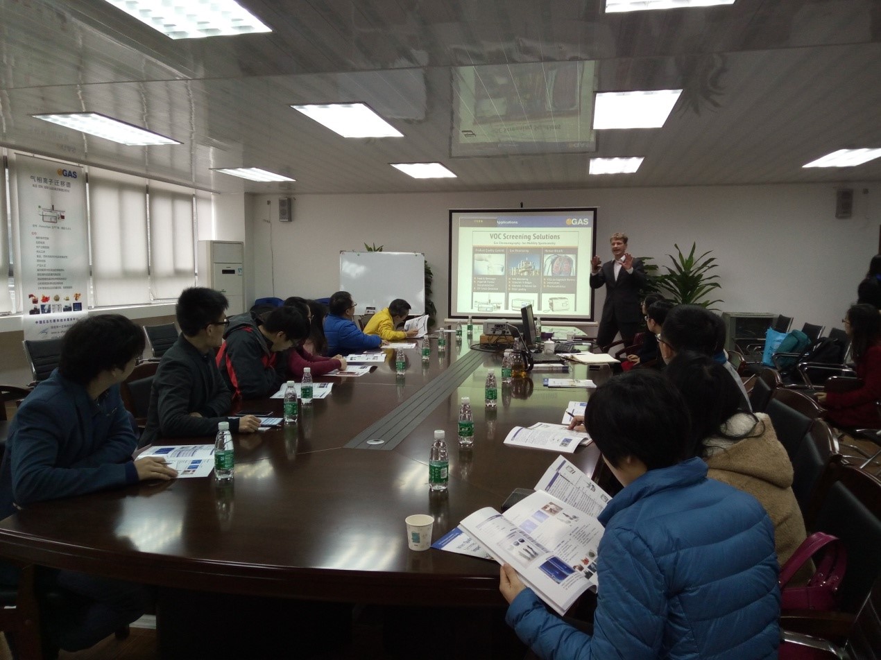 2016年3月15日上午德国G.A.S.公司总裁 Thomas博士来访公司,并在公司会议室做学术报告,题目为“气相离子迁移谱技术的研究进展与应用”,并与公司教师进行学术交流。