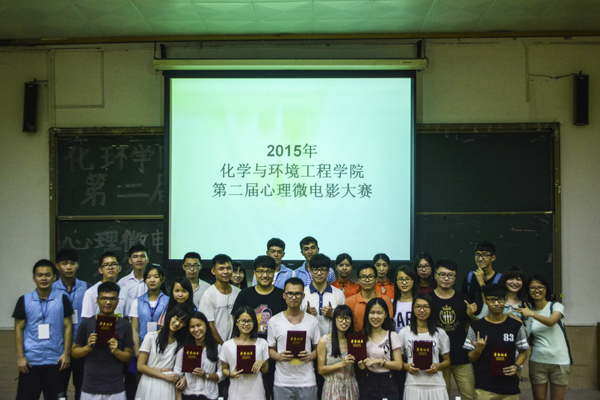 比赛以班级为单位,7个参赛班级各派一名代表依次做简单的作品介绍后便开始播放电影,最终由评委选出获奖班级并颁奖。在洪沛雄师兄做完精彩的赛前致辞及欣赏了一部上一年校级的优秀心理微电影《心声》后,比赛正式开始。