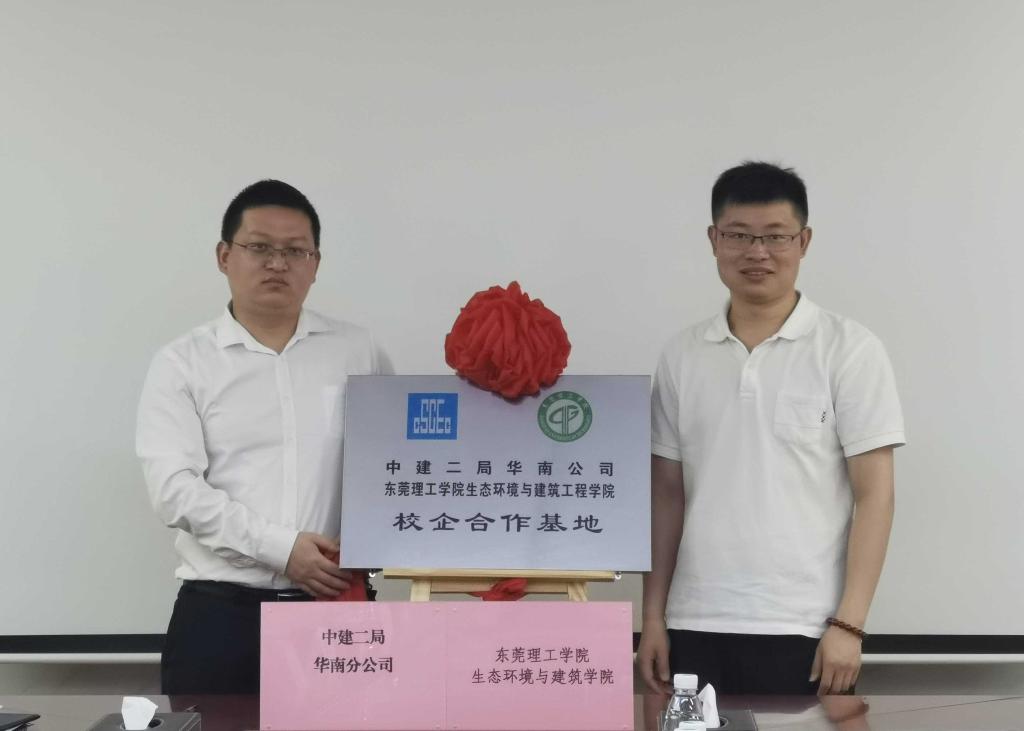 4月7日,伟德国际唯一官网入口教学实习基地签约暨揭牌仪式在中建二局东莞分公司举行,公司bevictor伟德官网土木工程系主任艾心荧博士、系副主任丁其乐博士与中建二局东莞分公司党总支副书记褚文科、总工程师孟珊、办公室主任王龙等出席。
