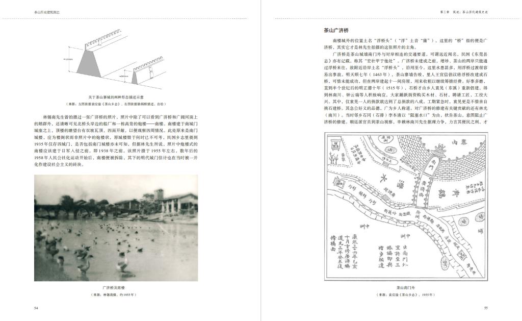 第一章《山川》,在着眼人类造物之前,纵观茶山山脉、河流的形塑过程,以便我们了解往后一切,均是自然留下的伏笔;第二章《村寨》,考察了从寨城到各村落的选址与规划格局,在山河的伏笔里,了解茶山先民如何经营他们的乡土;第三章《筑迹》,用编年史的形式,以建筑为出发点,展现茶山历代代表性建筑所映射的时势变幻;第四章《遗产》,回归对现状田野考察的报告,逐村介绍其建筑遗产的留存情况,对其中佼佼者作简要介绍,并附遗产分布图、统计表和相关建筑测绘图纸、模型,以提供更为全面精准的研究资料,也方便各单位明了各自家珍;第五章《保护》,可视为该书余论,结合作者的现场勘察和实践经验,对茶山镇内的历史建筑保护工程提供具体建议与意见;全书最后另有附录,详列研究过程中通过文献检索、口述历史和现场踏勘整理出来的《茶山历代建设记事》,以供读者查阅比对。