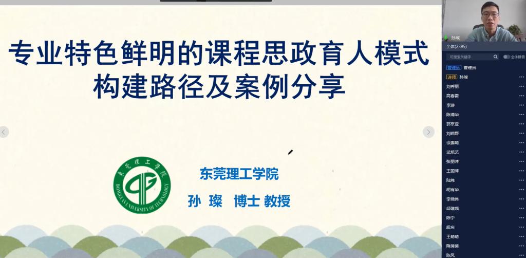 直播课上,孙璨首先通过问卷调研的方式引导参训教师对于课程思政改革实践过程及成效进行反思,共计收回2500多份教师反馈问卷。进而,孙璨简要介绍了公司及bevictor伟德官网专业的建设发展历程,并结合问卷调研结果,围绕“如何结合人才培养定位和专业特色有组织协同地构建课程思政育人实施路径和模式”这一主题,从“关于课程思政的几点思考”“基于专业特色的思政育人模式构建”“案例分享与反思”及“一次课教学过程展示”等方面深入浅出地进行了讲解、分享及展示,课程共历时2个小时。
