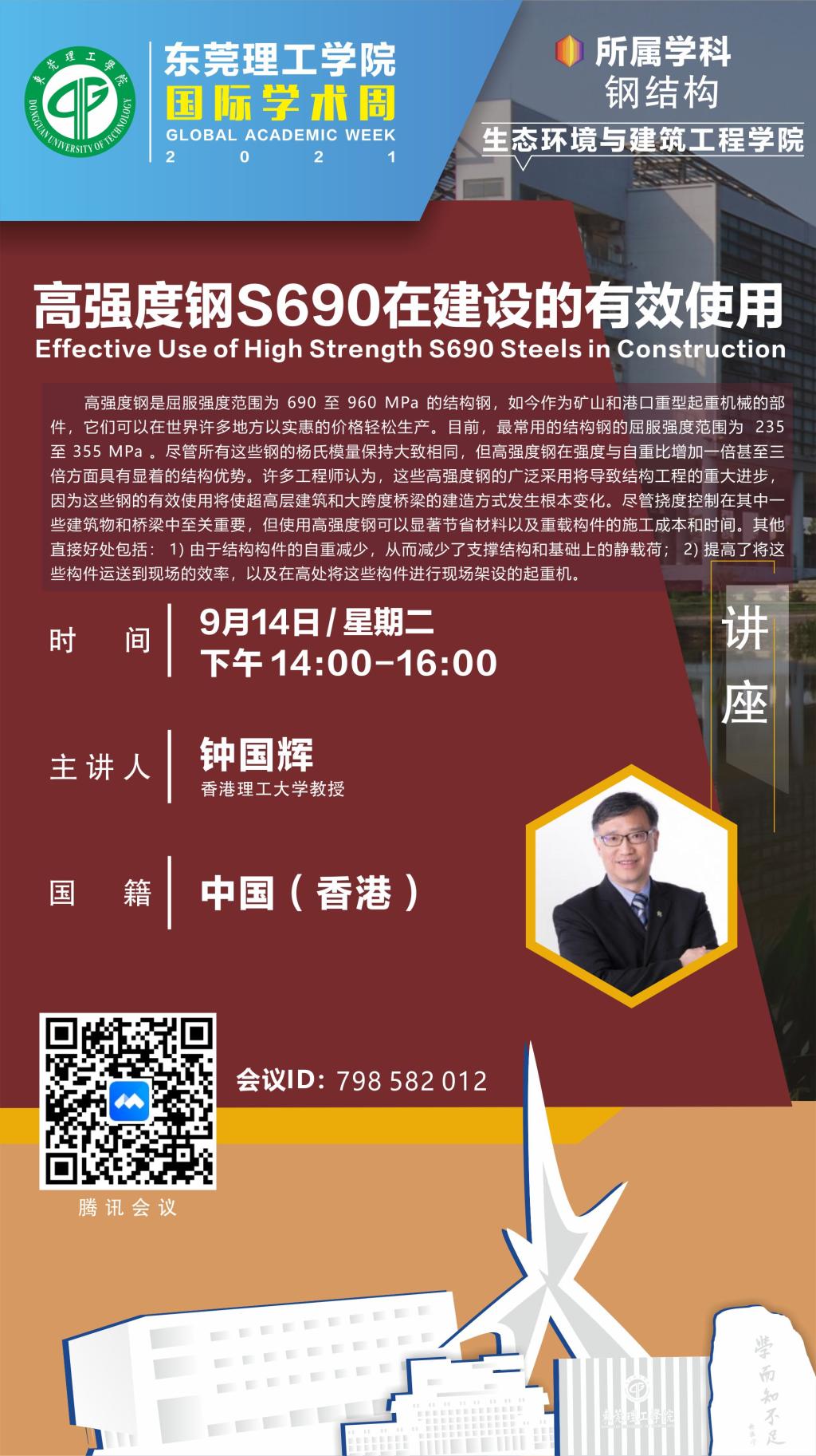 2021年伟德国际唯一官网入口国际学术周(Global Academic Week)在9月开学一周后正式启动。公司分别邀请了英国伦敦大学公司白云教授、日本早稻田大学Suguru Noda (野田優教授)、香港理工大学钟国辉教授开设了3场线上讲座,英国普利茅斯大学Long-yuan Li教授开设了1门全英课程。