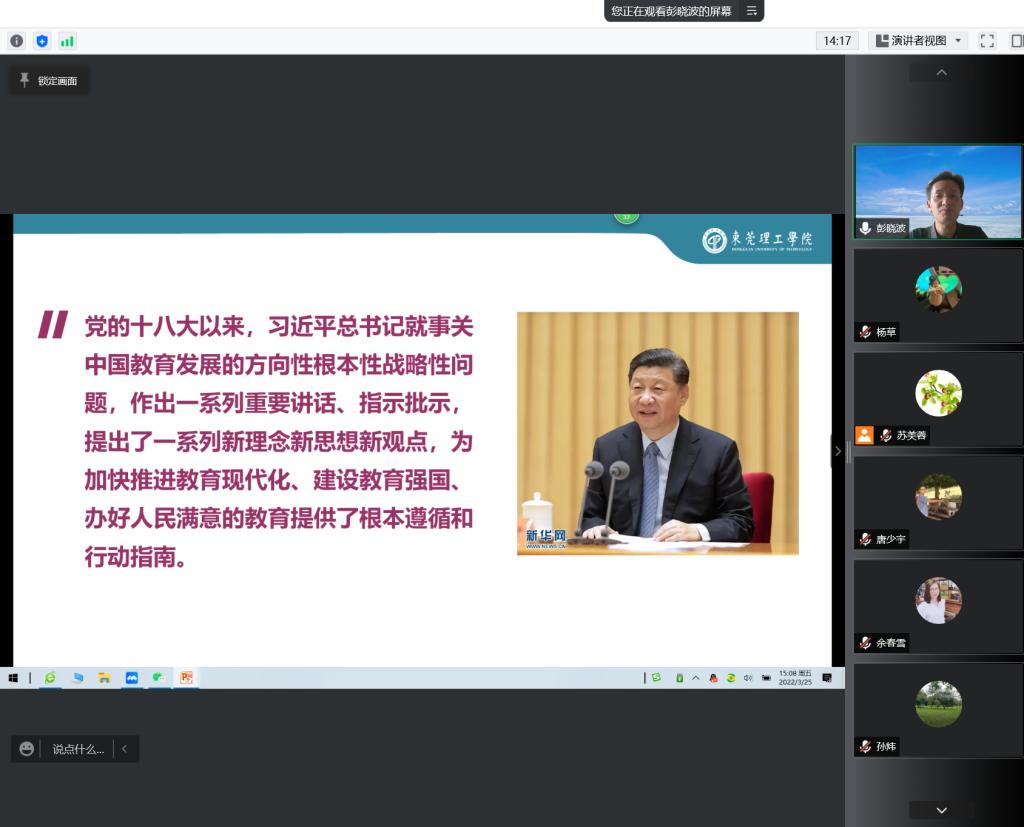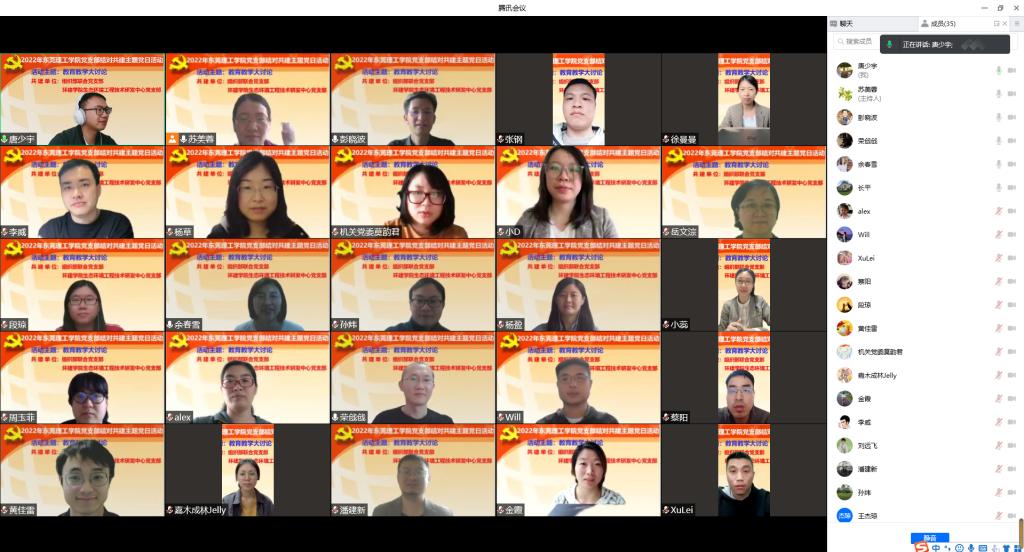 为深入学习贯彻习近平总书记关于教育的重要论述和系列重要讲话精神,贯彻落实公司《伟德国际唯一官网入口深化课程思政建设实施方案》、《关于开展“深化课堂教学改革 提升课程育人质量”公司产品大讨论的通知》精神,提高人才培养质量,3月25日,生态中心(以下简称“中心”)党支部通过与党委组织部联合党支部结对共建,在腾讯会议平台组织了主题为“公司产品的思政探讨——春风化雨”的线上主题党日活动。本次活动由党委组织部联合党支部书记彭晓波同志主持,共分为四个部分:一是“第一议题”学习;二是党委组织部联合党支部谈对公司产品大讨论的理解和对中心党支部的希望;三是中心党支部结合工作实际,谈对公司产品思政工作的理解;四是会议总结。中心22名党员和3名拟发展人员以及党委组织部联合党支部10名党员到会参加。