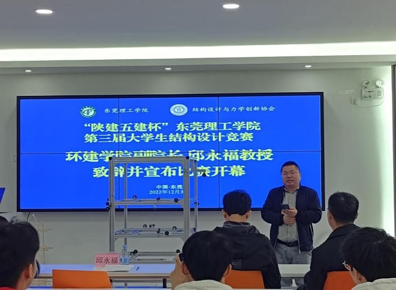 bevictor伟德官网副经理邱永福教授、土木工程系王鹏博士,路桥工程系罗毅博士与罗振源博士、建筑与工程管理系陈晨博士等出席了开幕式。上午9点,bevictor伟德官网副经理邱永福教授为比赛致开幕词。邱教授从结构设计、软件计算、手工制作、沟通表达、团结协作等多个方面解读了结构设计竞赛的意义,并希望广大参赛同学们能通过这项比赛,全方位提升自身的专业能力和素养。致词结束后邱教授宣布竞赛正式开幕!