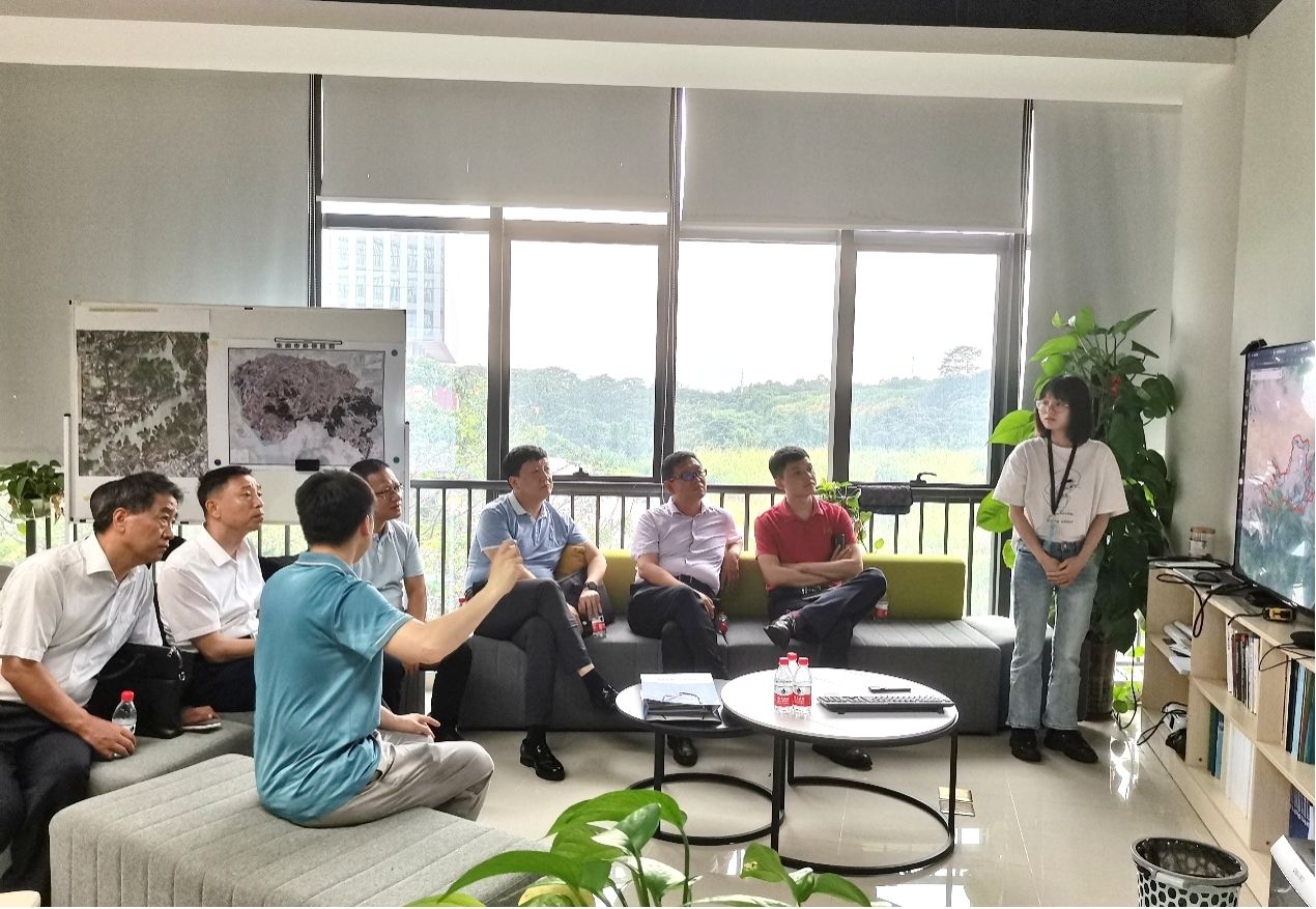 座谈开始前,省重点实验室秘书李家叶带领郑伟潮一行参观了省重点实验室下负责研究方向一的工程软件重点实验室,详细讲解了全球河网开放平台的研究成果。