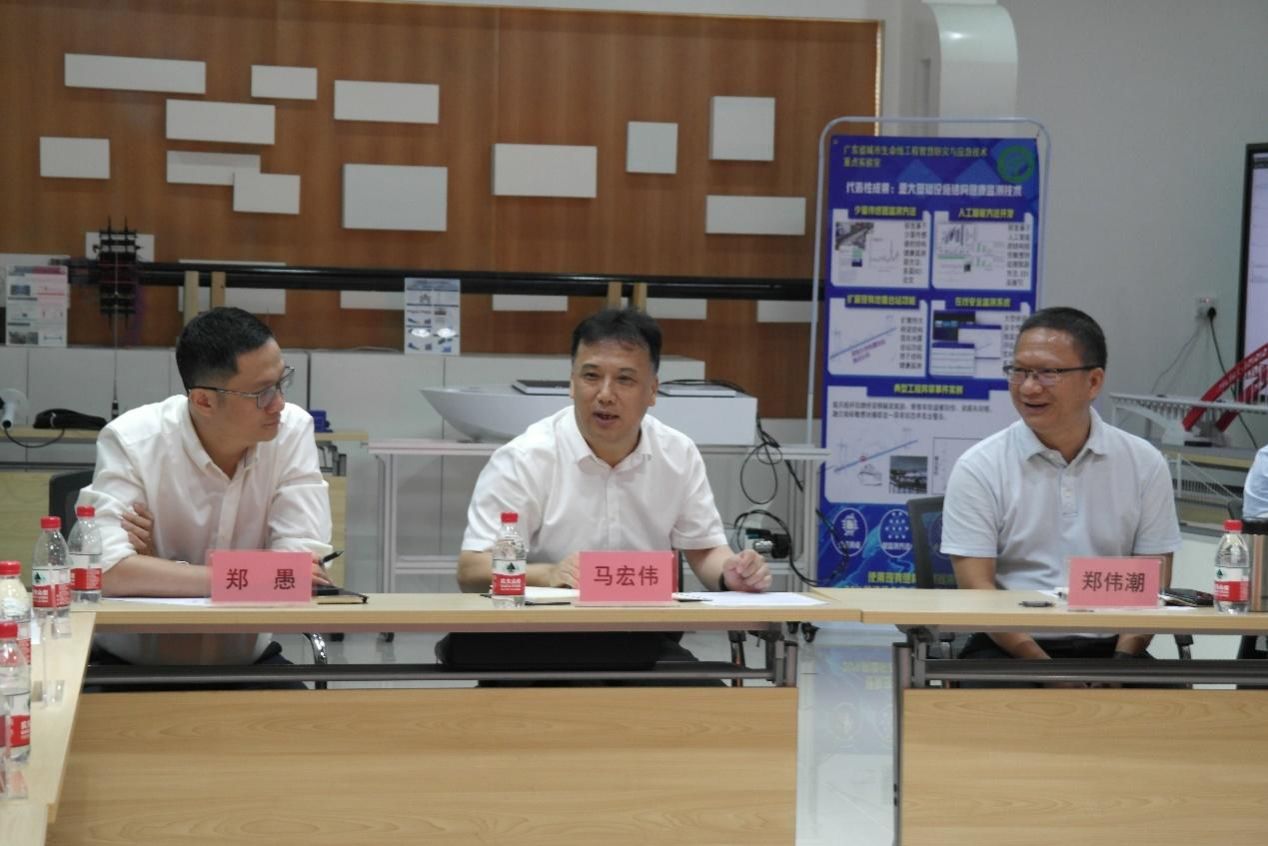 6月8日,江门市高新区管委会副主任郑伟潮带队到公司参观交流,考察广东省城市生命线工程智慧防灾与应急技术重点实验室建设进展。公司党委副书记、董事长、省重点实验室主任马宏伟出席了座谈会,省重点实验室骨干人员参加了此次交流。
