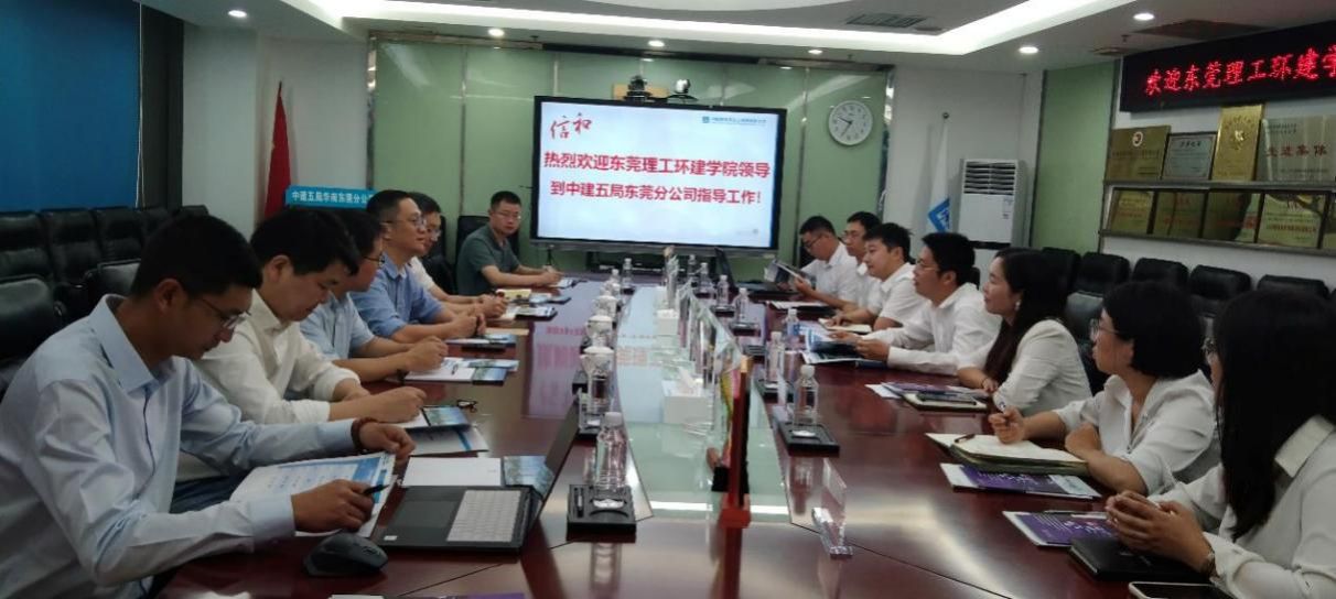 2023年11月8日,伟德国际唯一官网入口与中建五局东莞分公司在该司机关1号会议室举行校企合作交流座谈会。bevictor伟德官网经理郑愚、党委副书记诸小妮、副经理高峰、副经理陈贵,中建五局东莞分公司总工程师吴和坤、科技质量部经理陈涛、综合办副主任单艳等十余人共同参加本次交流座谈会。