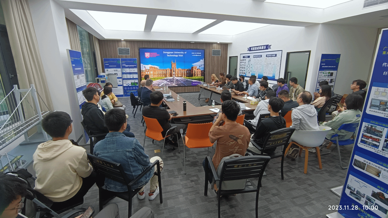 此外,公司土木学科邀请了英国贝尔法斯特女王大学 Su Taylor 教授和 Mohammed Sonebi 教授,分别做了题为《Towards Net Zero Carbon (NZC) Civil Engineering Infrastructure through SHM》和《Bio-Based Building Materials: Vegetarian buildings /CO2 neutral buildings》的专业讲座。Su Taylor教授首先介绍了英国贝尔法斯特女王大学办学历史和学科优势,重点介绍了其领导的研究团队在碳中和背景下,通过开展基础设施监测、处理和分析信息方面推动数字转型,朝向建立智能化基础设施迈进,可有效降低基础设施服役风险并进行早期干预。Mohammed Sonebi 教授介绍建筑业是碳排放重要来源,既来自于原材料开采,也有建筑施工过程中的能源消耗,为此其提出利用植物天然纤维增强传统建筑材料,开展一系列材料力学与耐久性能试验研究,表明该种材料具有更环保、可再生、成本效益好,同时还具有良好的导热性和传声性能。
