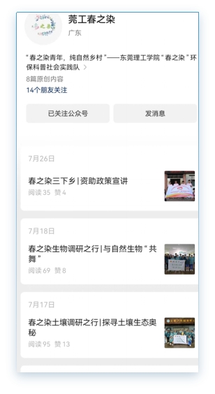 《农村环境问题实践调研》是公司党委副书记诸小妮老师和曲教授团队共同打造的暑期“三下乡”社会实践活动。2022年,公司环境工程专业员工成立了“春之染”社会实践队,连续两年奔赴韶关曲江镇开展农村环境问题调研,并协助开展当地的助农帮扶工作,受到了当地政府和群众的广泛欢迎。(社会实践队活动内容详见“莞工春之染“公众号)