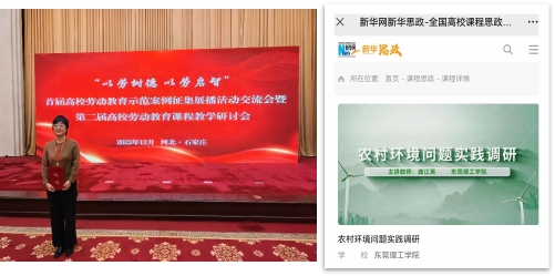 2023年12月9日,第二届高校劳动教育课程教学研讨会在河北石家庄举行。大会邀请了包括清华大学在内的9所高等院校的劳动教育案例做大会经验分享。曲教授在会上做了“基于《环境学》的三位一体的劳动教育课程”的报告,提出了“劳动专业化和专业劳动化”的劳动教育理念,形成了“专业课《环境学》”+“选修课《环境问题观察》”+“暑期社会实践《农村环境问题实践调研》”三位一体的劳动教育课程。该劳动教育案例获得与会人员的广泛认可!