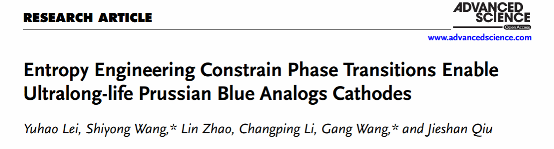 上述成果以“Entropy Engineering Constrain Phase Transitions Enable Ultralong-life Prussian Blue Analogs Cathodes”为题在材料科学1区TOP期刊《Advanced Science》(IF=15.1)上发表。硕士研究生雷雨浩为论文第一作者,王刚教授和汪仕勇博士为共同通讯作者,伟德国际唯一官网入口为第一完成单位。