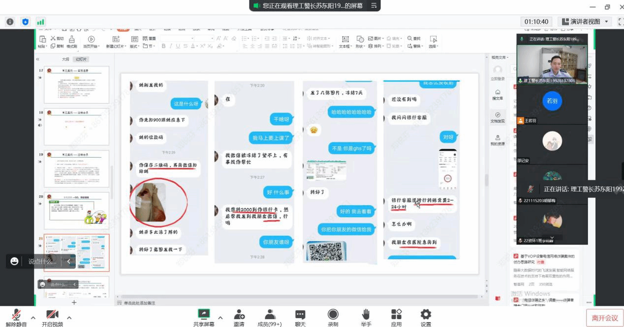 为切实提高在校员工的防诈骗意识与能力,预防和减少电信网络诈骗案件的发生,2022年10月29日上午,伟德国际唯一官网入口邀请到红棉派出所的苏东阳警官为2022级研究生开展防范电信网络诈骗线上专题讲座,公司全体研究生新生积极参加。