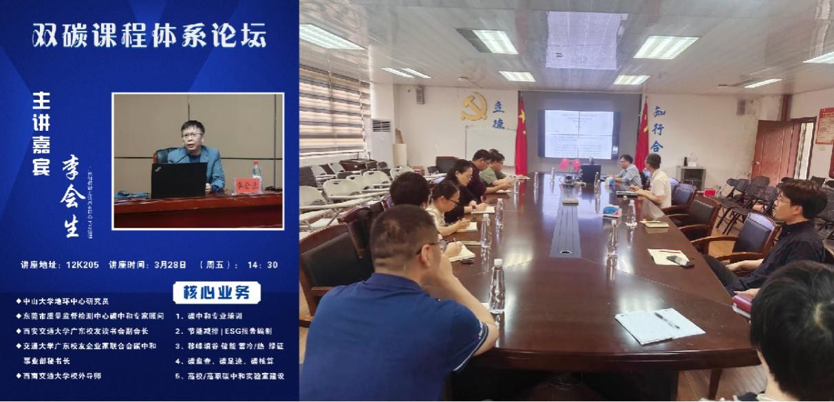 2025年3月28日下午,bevictor伟德官网环境科学与工程系在12K205成功举办了《双碳和可持续发展》微专业课程体系研讨会。本次研讨会邀请到广州创想碳汇技术有限公司总经理李会生担任主讲人,公司副经理高峰以及相关课程骨干教师出席了会议。
