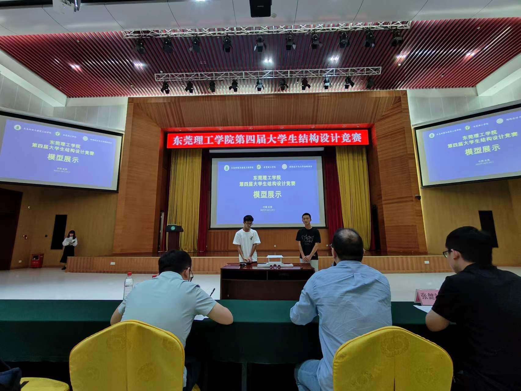 比赛过程中,在主持人的引导下各组参赛队员带着模型登台答辩。首先由各组介绍模型设计与制作的初衷与想法,接着由评委老师结合模型特点与参赛队员进行提问交流。在介绍环节全场静默,专心聆听各组制作模型时的初衷与想法;而在答辩环节,参赛同学与评委老师围绕模型设计和制作要点,展开了积极充分的讨论。不少同学表示在答辩过程中学到了许多结构设计方面的知识,这是一个很新奇很快乐的体验。