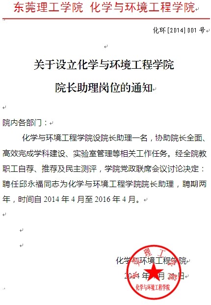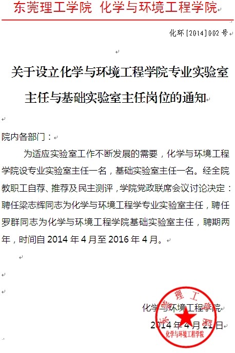 关于设立化学与环境工程公司专业实验室主任与基础实验室主任岗位的通知