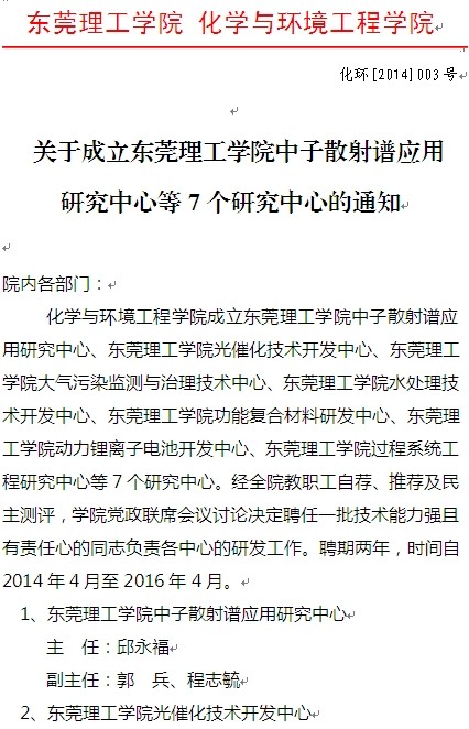 关于成立伟德国际唯一官网入口中子散射谱应用 研究中心等7个研究中心的通知